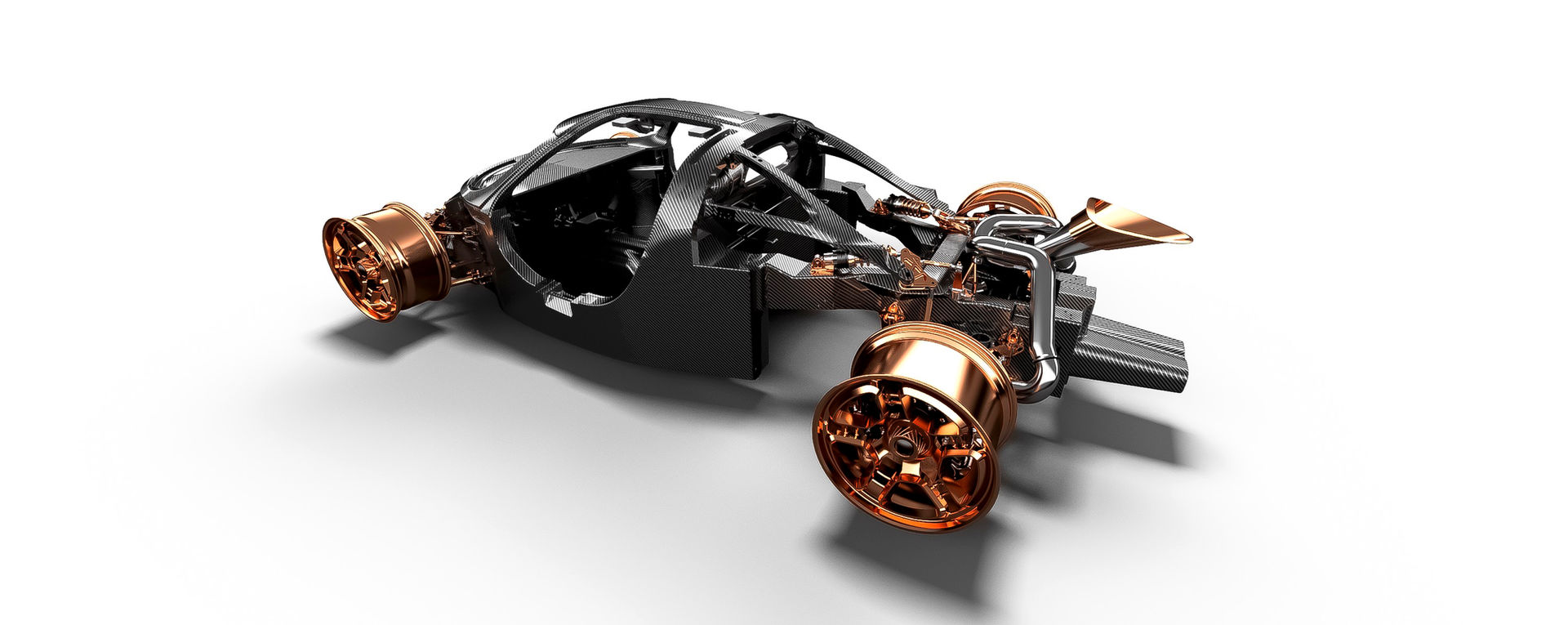Beneath the surface, the interior showcases an elaborate combination of design and exotic materials. Polished copper and diamond pattern detailing adorn the cabin, fashioning a true sense of drama and occasion. The architecture of the interior takes on a minimalist design approach, reducing technological intervention and complexity, the attention was focused on details such as the exposed shifter, inspired by the original P70, modernised to create a highly analogue and tactile feel. The classically designed switchgear and circular analogue display dials takes inspiration from the timeless design themes of the mid 50s and 60s era, a subtle indication of the relationship between De Tomaso’s with Ford.